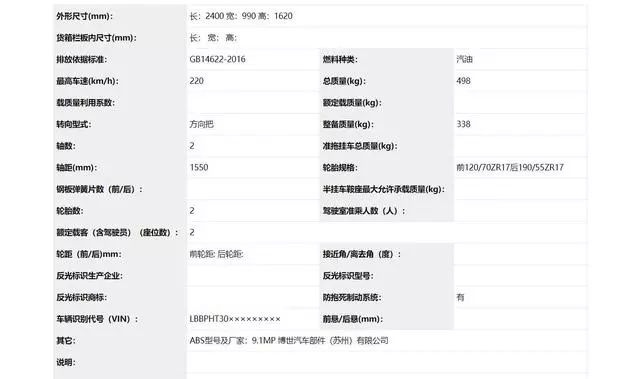 實(shí)際排量:1290cc最大功率:100Kw外形尺寸(mm):長:2400 寬:990 高:1620排放依據(jù)標(biāo)準(zhǔn):GB14622-2016最高車速(km/h):220總質(zhì)量(kg):498整備質(zhì)量(kg):338軸距(mm):1550輪胎規(guī)格:前120/70ZR17后190/55ZR17車輛識別代號(VIN):LBBPHT30×××××××××ABS型號及廠家:9.1MP 博世