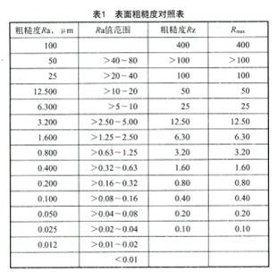 根據(jù)GB/T 1031-2009《產(chǎn)品幾何技術(shù)規(guī)范(GPS)表面結(jié)構(gòu)輪廓法表面粗糙度參數(shù)及其數(shù)值》標(biāo)準(zhǔn),關(guān)于粗糙度有幾個(gè)參數(shù),其中在實(shí)際生產(chǎn)中作為產(chǎn)品評(píng)判用的主要有Ra、Rz和Rmax,根據(jù)表1所示的粗糙度對(duì)照表中各粗糙度參數(shù)的關(guān)系說(shuō)明,Ra3.2 μm對(duì)應(yīng)的Rz為12.5 μm。