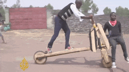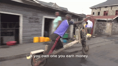 “只要你有一輛Chukudu,你就不會遇到任何交通問題?!?0歲的騎士圖麥尼·奧拜迪,認為Chukudu能帶你完成剛果東部范圍內(nèi)任何從A點到B點的移動。Chukudu是能將肌肉力量高效轉(zhuǎn)化為速度的駕控利器。只要善于利用地心引力,它的行駛速度快得嚇死人。遇上下坡,最高時速可達二三十公里/小時,是當?shù)仫j車族的最愛。