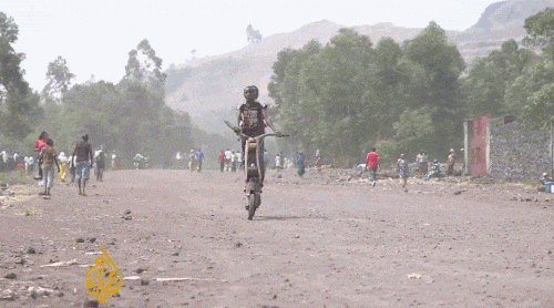 在非洲剛果的戈馬,市中心最具風采的街景就是那些騎著木頭踏板自行車風馳電掣的年輕人。