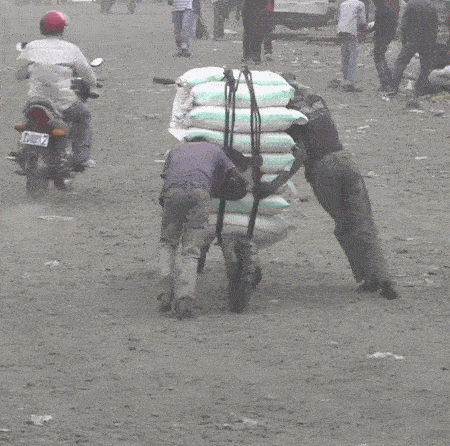 這種極具想象力的交通工具叫做“Chukudu”,是當?shù)剡\輸系統(tǒng)的骨干力量。它們簡陋但堅固,低科技但異常實用。在被火山熔巖和泥土覆蓋的城鎮(zhèn)與村莊,人們騎著Chukudu穿山越嶺,長途運輸從食物到磚頭的大量貨物。