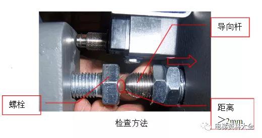 鼓式制動器、摩托車剎車圈、Drum brake、輪轂剎車圈專業(yè)生產(chǎn)廠家無錫九環(huán)2021年11月25日訊  制動器檢查與維護應(yīng)確保已斷電,電梯曳引機處于制動狀態(tài),電梯系統(tǒng)處于停止狀態(tài)。每月應(yīng)對制動器動鐵芯(兩側(cè))是否靈活進行檢查(如下圖):斷電狀態(tài)下,用手推導(dǎo)向桿,保證導(dǎo)向桿與螺栓距離應(yīng)大于2mm。若導(dǎo)向桿與螺栓之間距離小于2mm或松手后不能自動回復(fù),需要對制動器進行清潔維護。